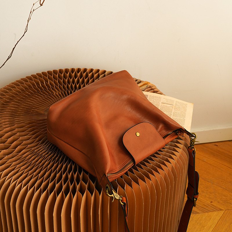 New Street Vintage Shoulder Crossbody Bag Head Layer Cowhide Fashion Casual Dumpling Bag Large Capacity Casual Bag for Women