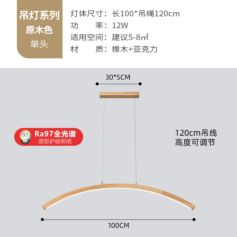 Solid Wood Restaurant Chandelier Modern Simple Long Strip Dining Room Dining Table Lamp Office Tea Room Bar Counter Log Smart Lamps