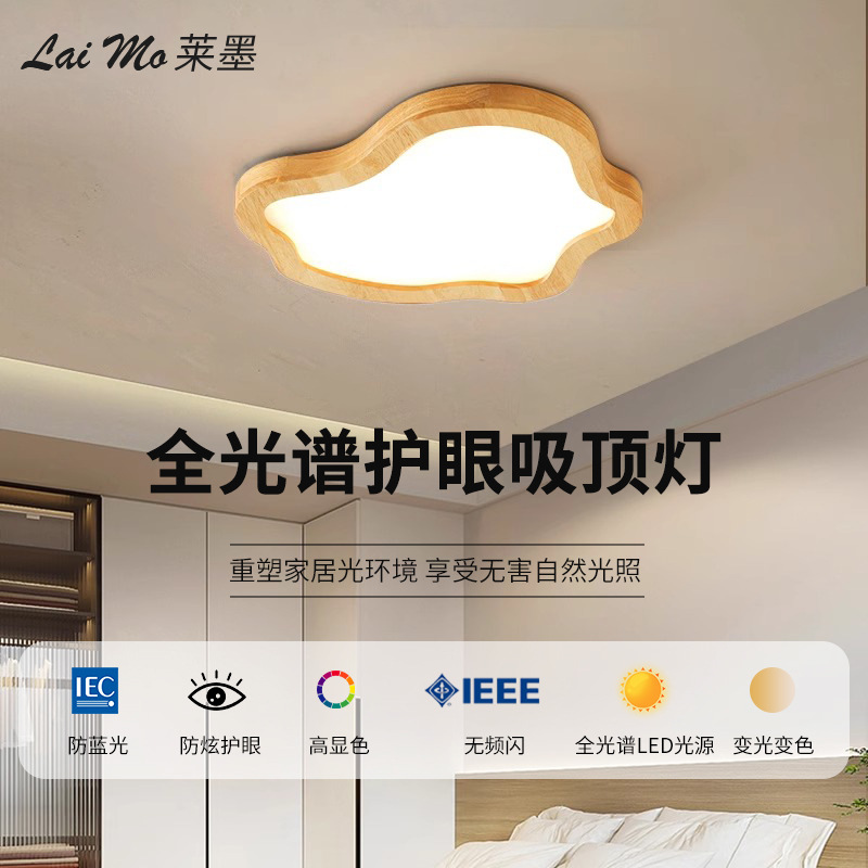 Japanese-Style Ceiling Lamp Ultra-Thin Creative Nordic Simple Modern Children's Room Cloud Wood Style Full Spectrum Ceiling Lamp