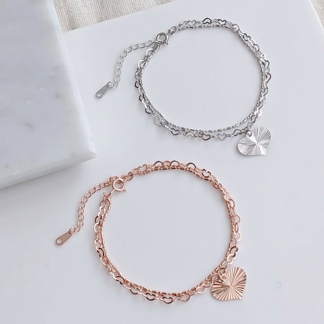 Ins Girly Heart Bracelet ~ Heart-Shaped Japanese and Korean Elegant Double-Layer Imitation Pearl Chain Heart Pendant Bracelet for Students