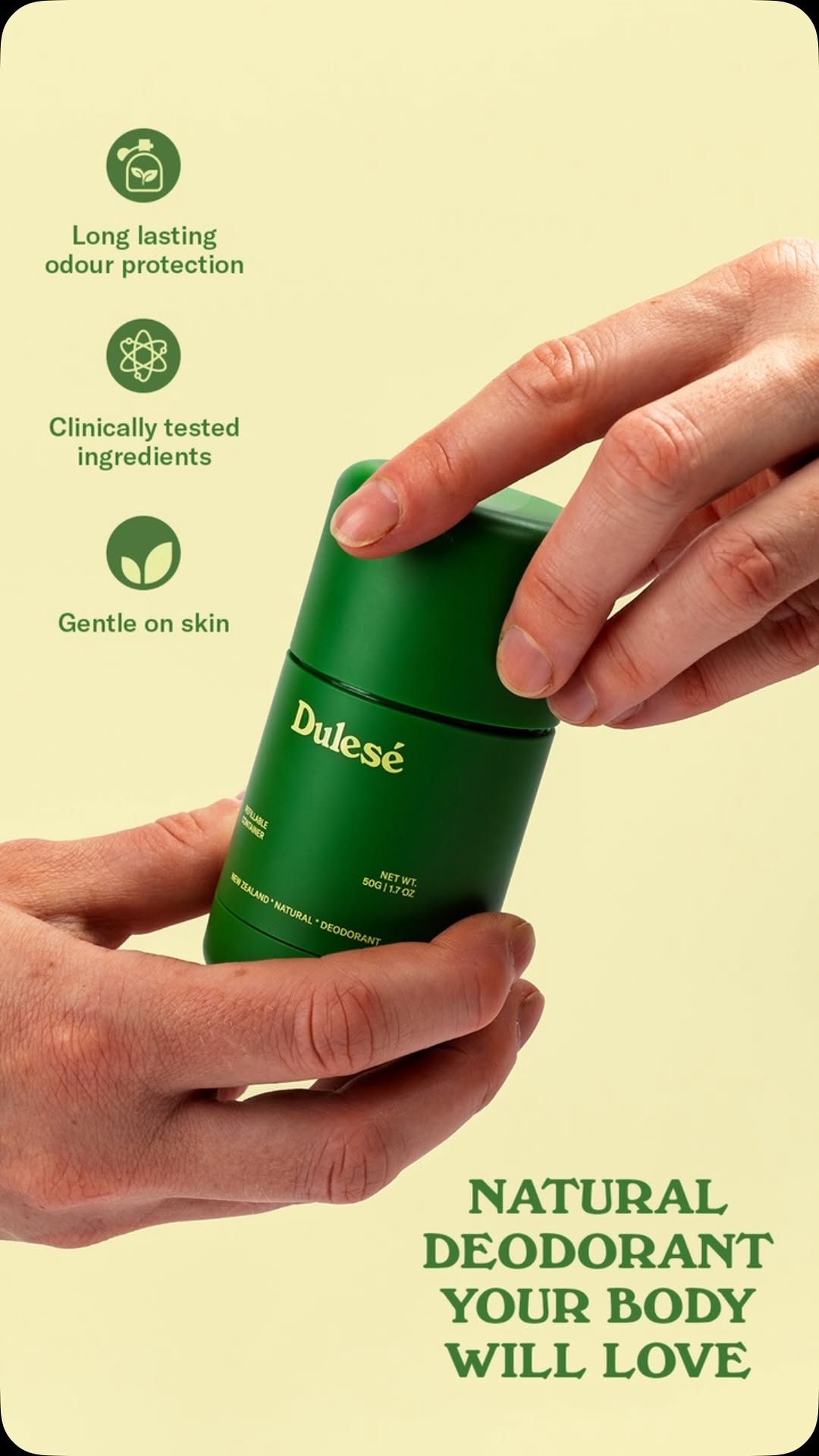 | Application Feel & Finish | Non-staining, non-sticky, fast-absorbing formula | Reinforces a key positive insight that customers love products that don't stain clothes or leave a sticky residue. This enhances the daily user experience. |