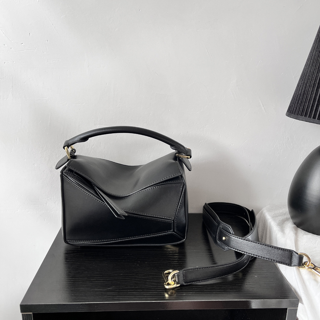Bags 2025 New Genuine Leather Geometric Bag Cowhide Stitching Crossbody Bag Women's Bag Contrasting Color Hand-Held Shoulder Bag Soft Leather Bag