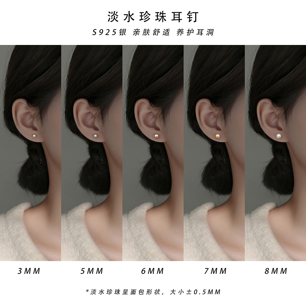 Yunxiaoshu Sterling Silver 925 Natural Freshwater Small Pearl Earrings Women's Mini Simple Style High-grade Earrings Ear Holes