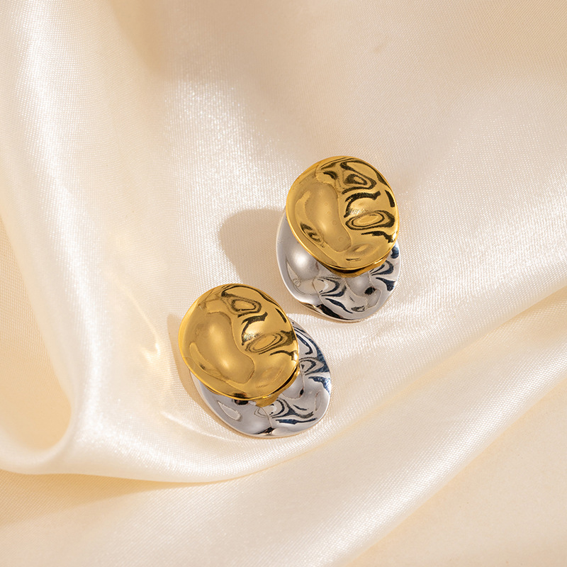 European and American Stainless Steel Two-Tone Color-Blocking Earrings Cross-Border Light Luxury Niche High-End Earrings Fashion Versatile Titanium Steel Earrings