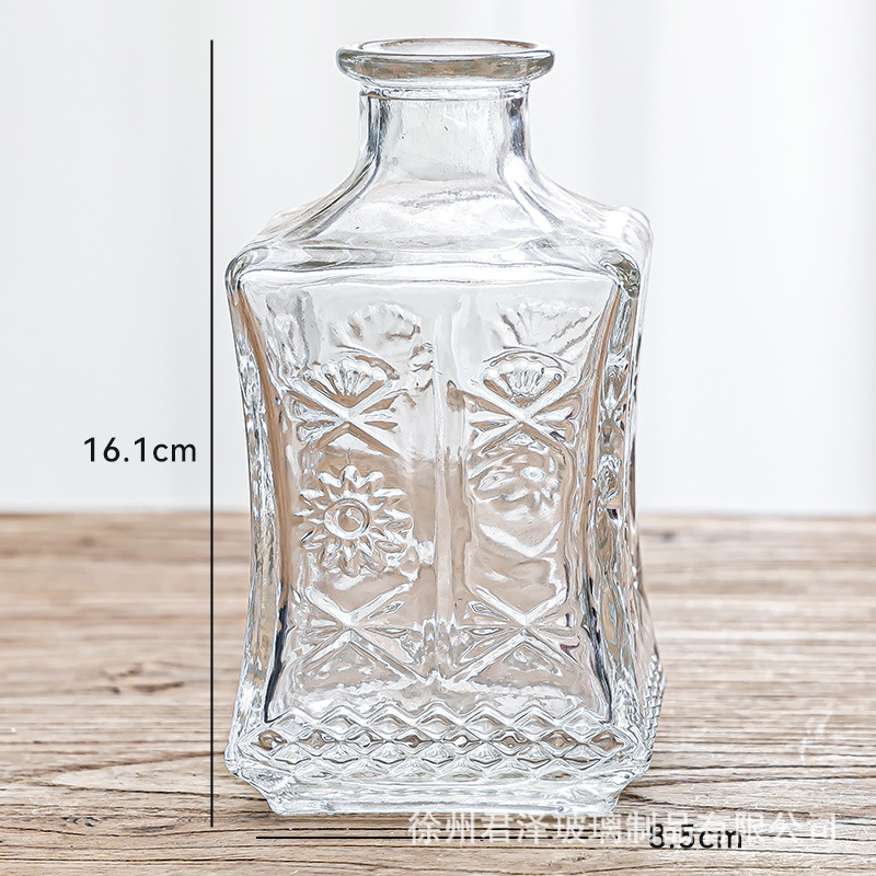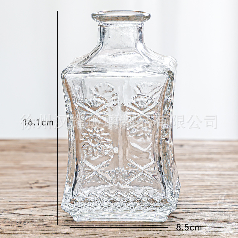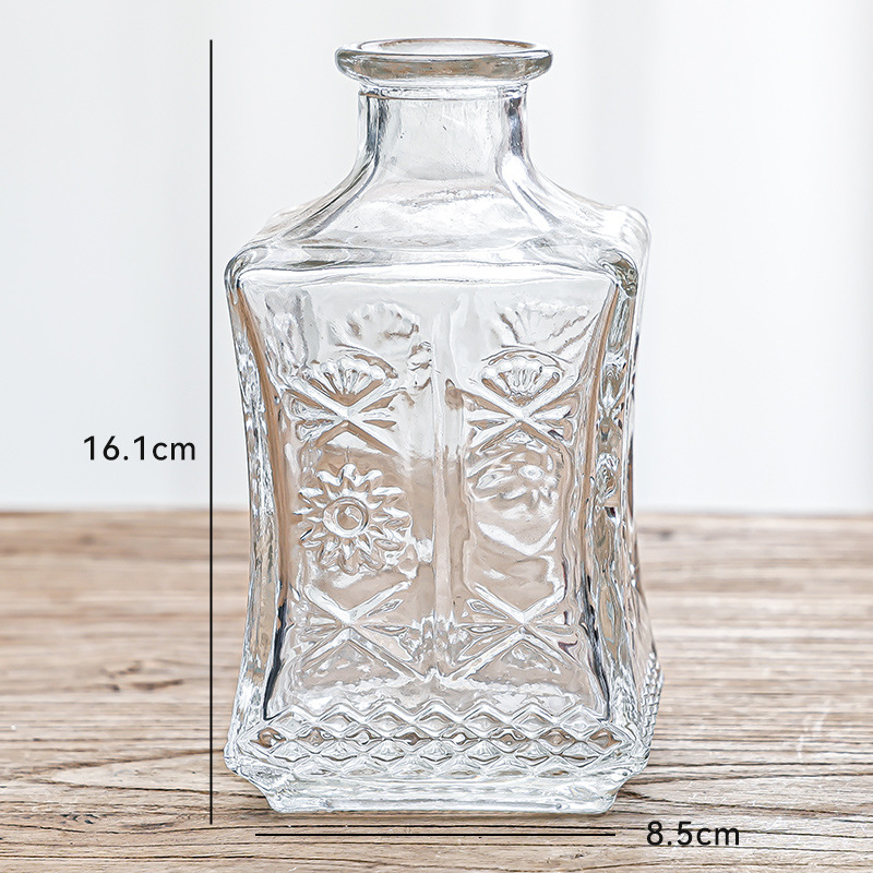 Retro Accessible Luxury Mini Glass Vase, Transparent and High-End, Living Room Ins Style Embossed Flower Arrangement Small Vase Decoration