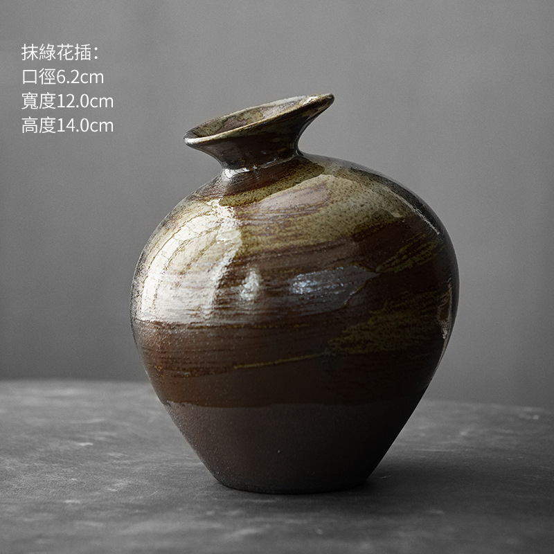 Japanese-style stoneware vase black pottery hand-painted retro abstract antique gold glaze floral ceramic Zen desktop ornaments
