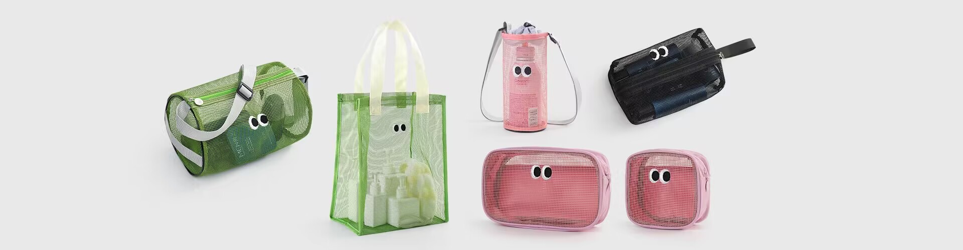 Using a single material (mesh) for all internal pockets instead of a mix of mesh, clear PVC, and solid fabric simplifies the sewing process and reduces manufacturing time.