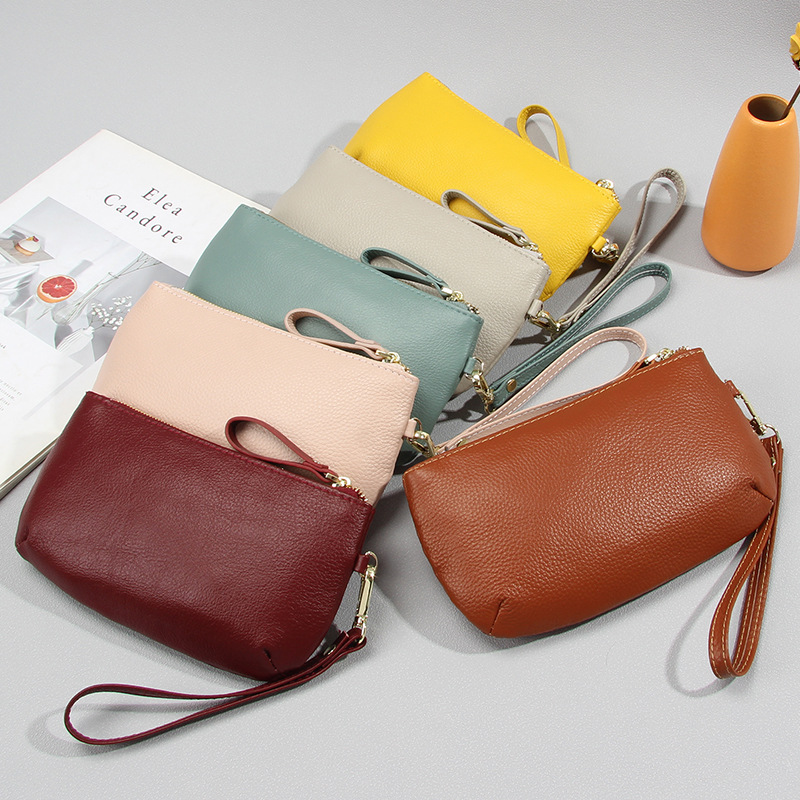 Korean Style Popular Cross-Border Genuine Leather Coin Purse, Fashionable Large-Capacity Zipper Women's Wrist Bag Factory Direct Sale