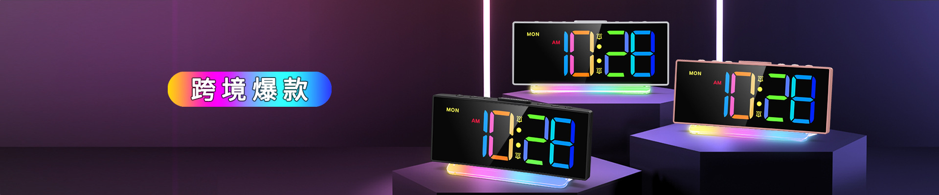 2025 New Amazon Cross-Border Rgb Colorful Night Light Radio Projection Clock Led Electronic Clock Desktop Alarm Clock