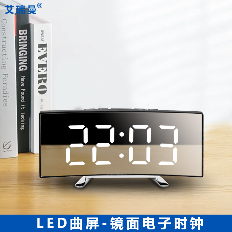 Creative curved electronic clock LED large screen mirror alarm clock student dedicated mute intelligent desktop clock wholesale