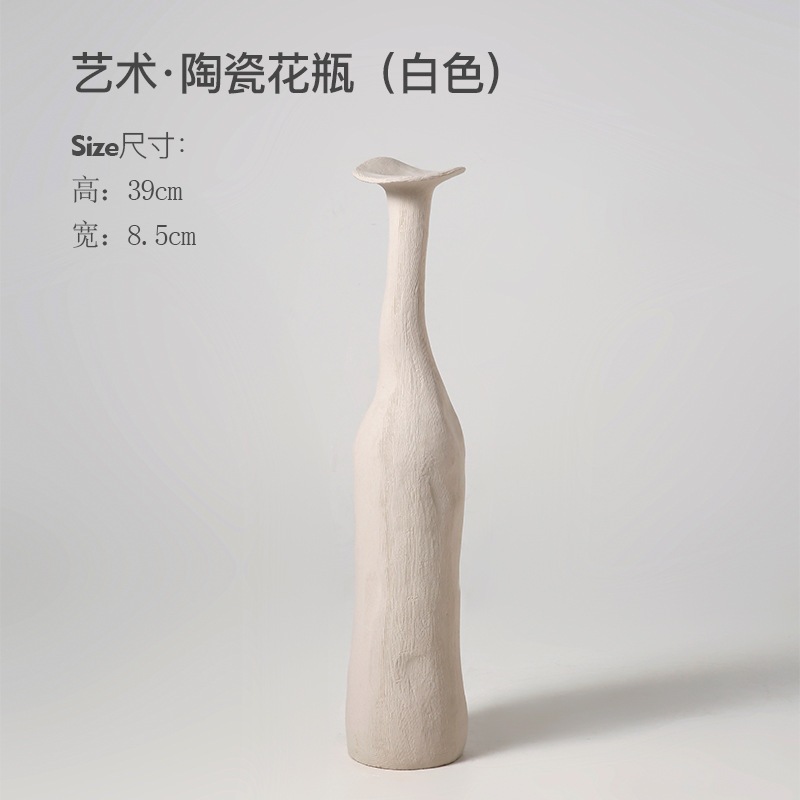 Frosted White Fashion Plain Burning Cross-border Modern Simple Ceramic Vase Creative Flower Vase Living Room Soft Nordic Decoration