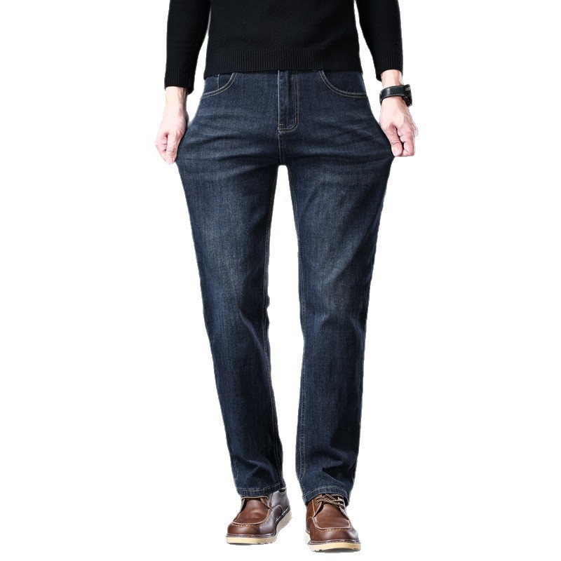 Factory Direct Sales Autumn and Winter New High-End Jeans Men's Straight Loose Elastic Business Casual Pants Middle-Aged Men's Pants