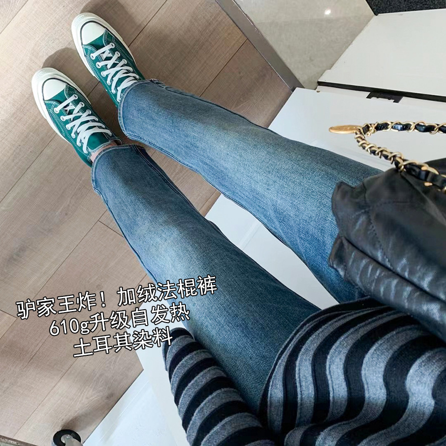 Super slim! Turkey fleece-lined Small Straight Bagel Pants Narrow Stretch High Waist Cropped Smoke Tube Jeans Women's Winter