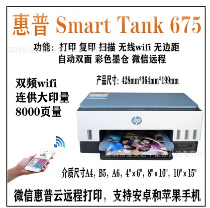 HP HP tank678_675 color home small automatic double-sided printer copy integrated mobile phone Wireless