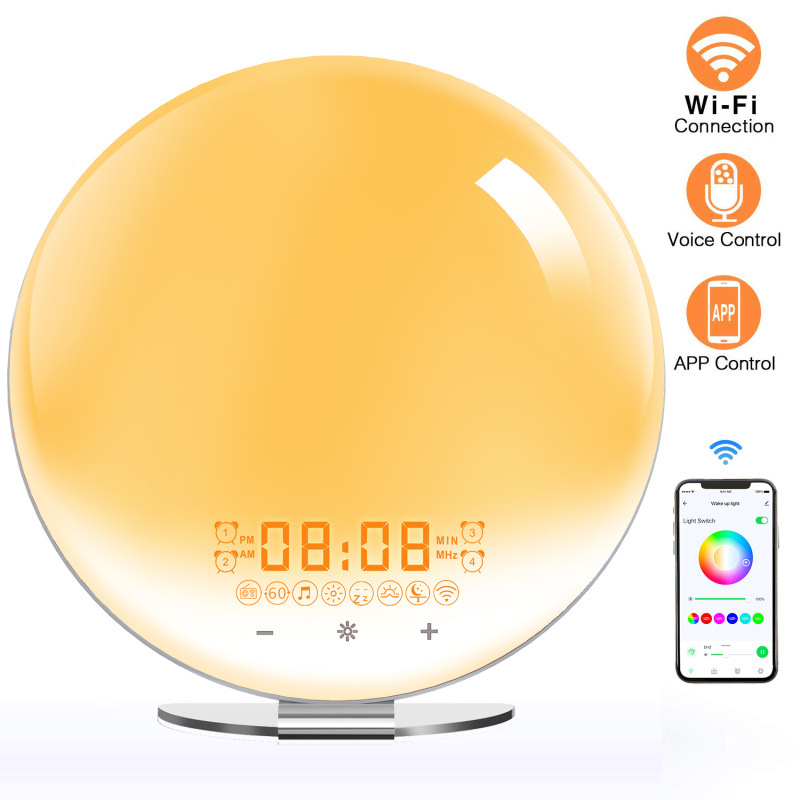 Smart wake-up light alarm clock mobile APP control imitation Sunrise Sunset bedside sleeping colorful WiFi voice night light