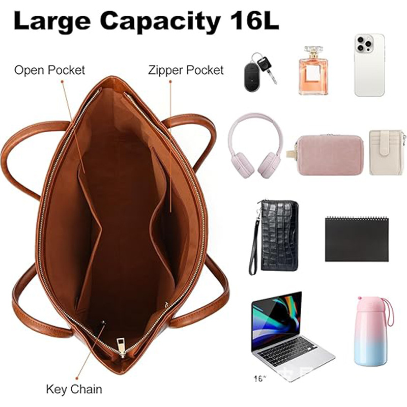 Women's Large Vegan Leather Zippered Work Tote Bag 16L Travel Handbag