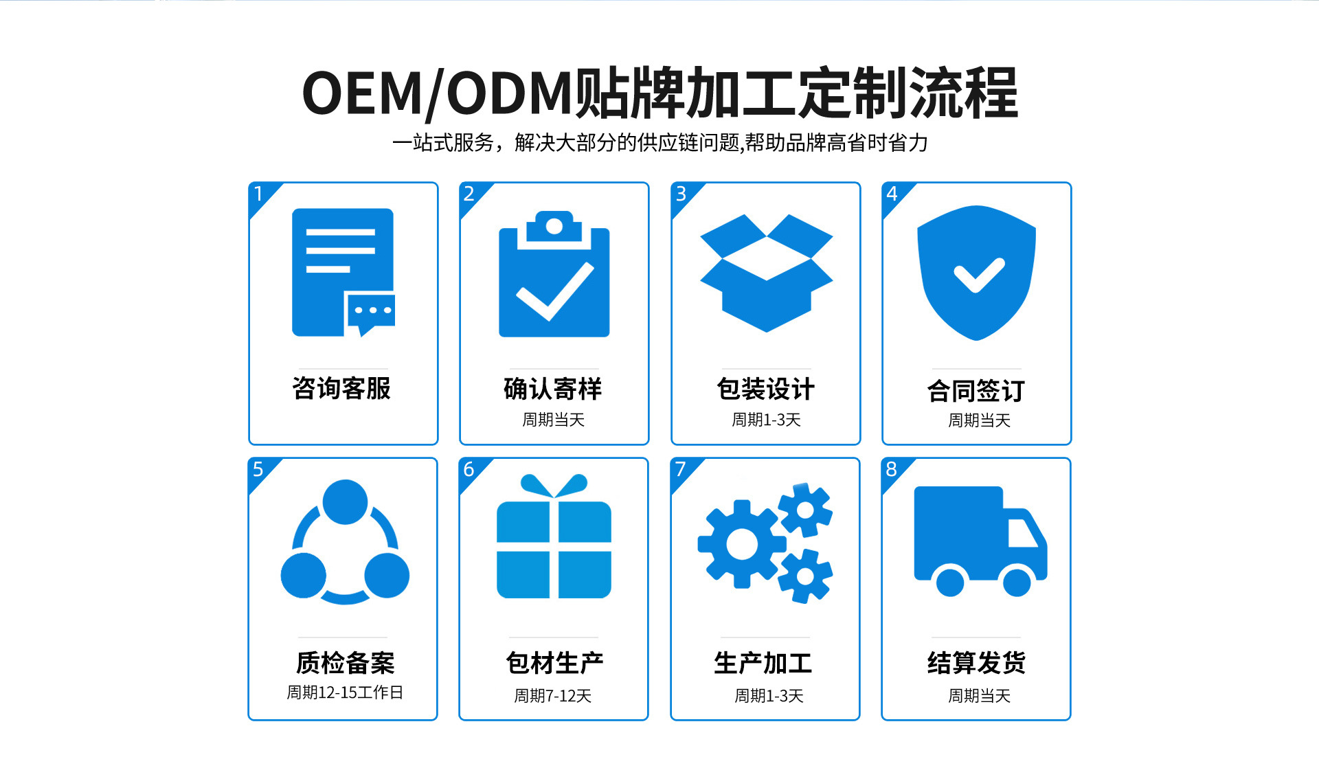 Avoids any custom ingredients or packaging components that could have long lead times, ensuring rapid production cycles using materials factories have on hand.