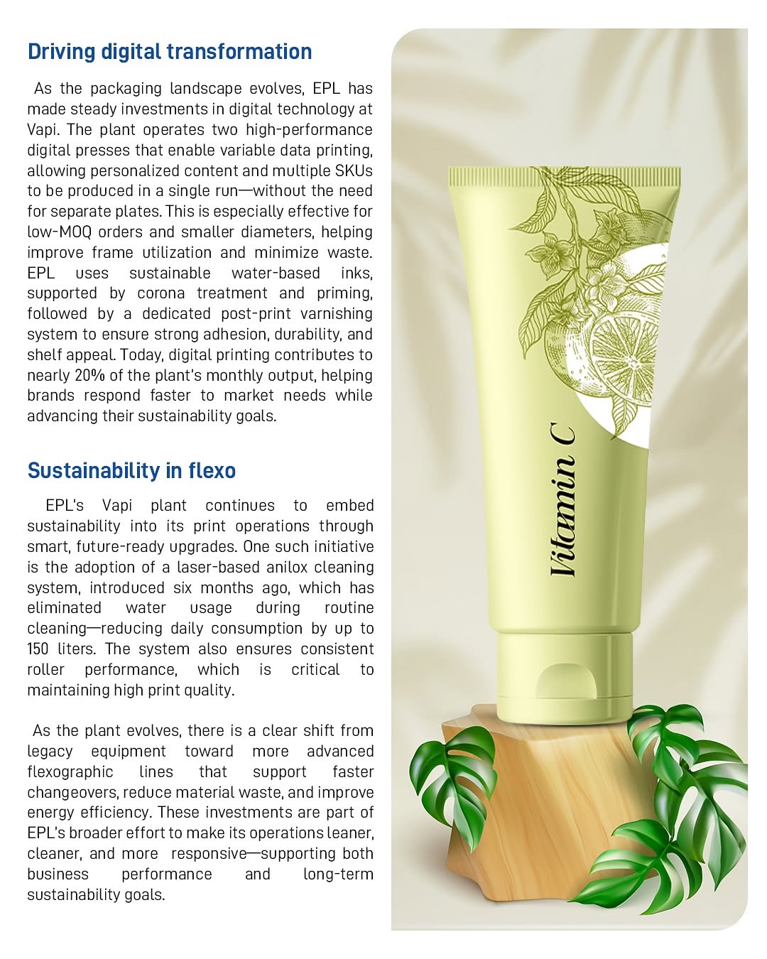 Appeals to environmentally conscious consumers and differentiates from standard plastic competitors. This aligns with the 'Sustainable Tubes' category name.