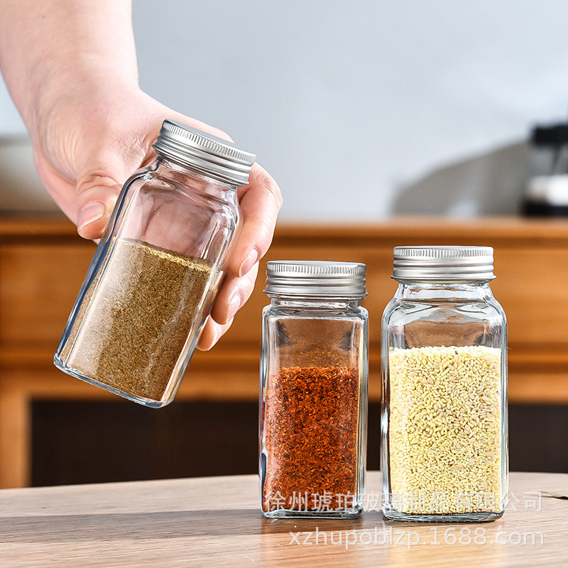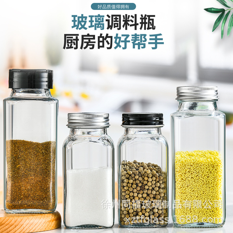 New Square Barbecue Seasoning Jar Sprinkle Bottle Pepper Powder Glass Seasoning Bottle Cumin Jar Commercial Seasoning Salt