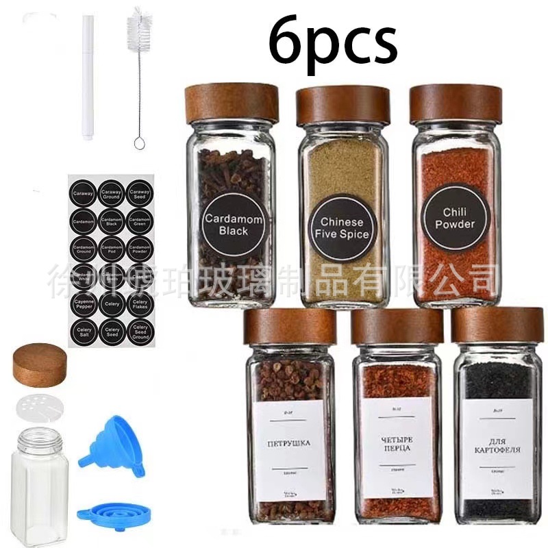 Amazon square seasonings jar 40oz acacia wood pepper bottle sprinkling jar cross-border 24 glass seasonings jar