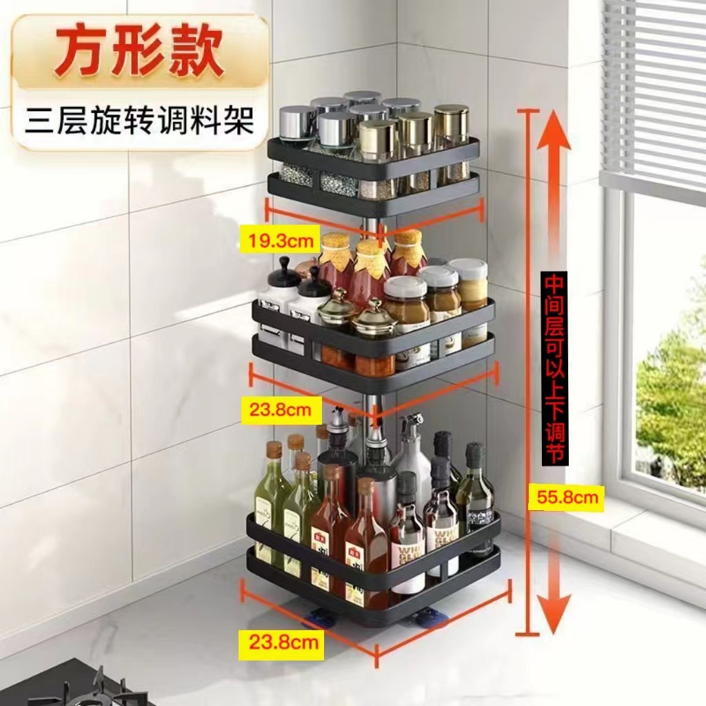 Carefully Selected Kitchen Multi-Purpose Square Storage Rack with Multiple Layers and Adjustable 360-Degree Rotation ° Rotating Spice Bottle Storage Saves Space