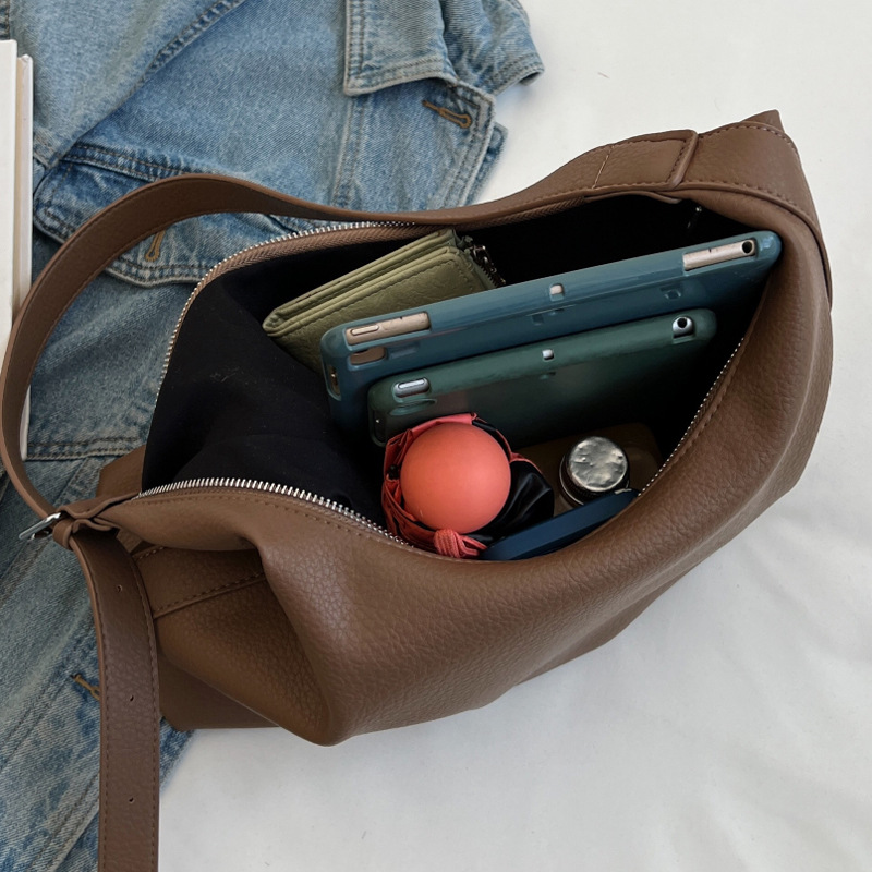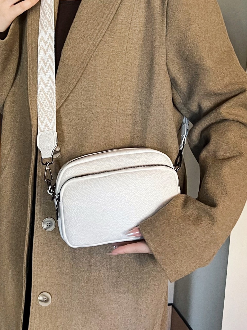 | Strap Design | A 1.5-inch wide, adjustable strap made from matching pebbled leather, with dual D-rings for reversible left/right shoulder wear. | Combines two highly-valued features: a reversible strap for comfort and a wide design. Using matching leather instead of fabric addresses the negative perception of 'cheap' materials, creating a cohesive, premium look. |