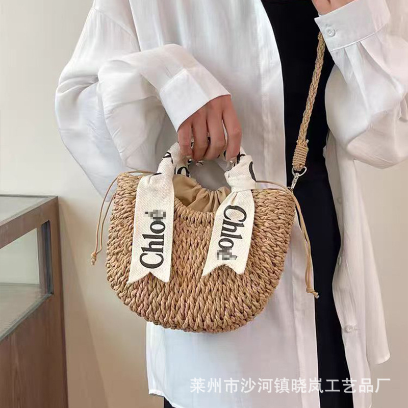 2024 New Style Straw Woven Bag Large Capacity Retro Straw Woven Bag Vegetable Basket Style Casual All-match Beach Bag for Women