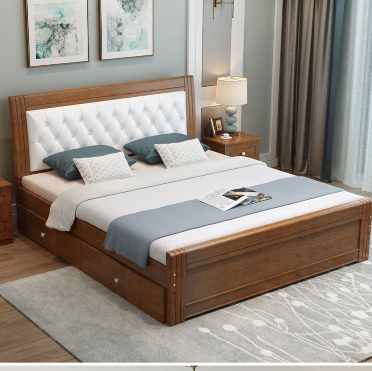 Solid Wood Bed Simple Modern Economical 1.8m Soft-Covered Large Bed 1m Nordic Style Double Bed Economical Bed Frame