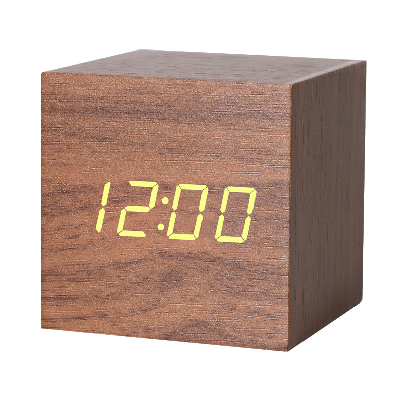 Alarm Clock Led Creative Voice-Activated Digital Electronic Silent Student Clock Luminous Bedside Square Cute Wooden