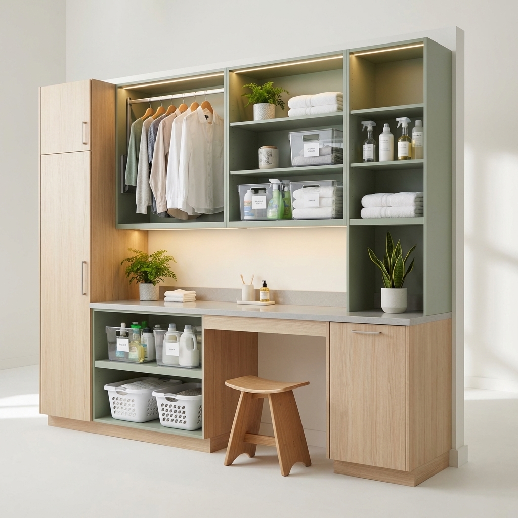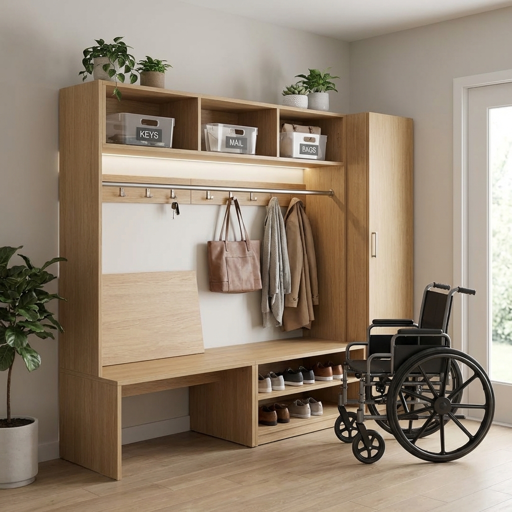This theme focuses on creating customized storage systems that are tailored to the unique routines and needs of a household. It includes designing systems that are easy to navigate for family members who are neurodivergent or have ADHD, emphasizing simplicity and visibility.