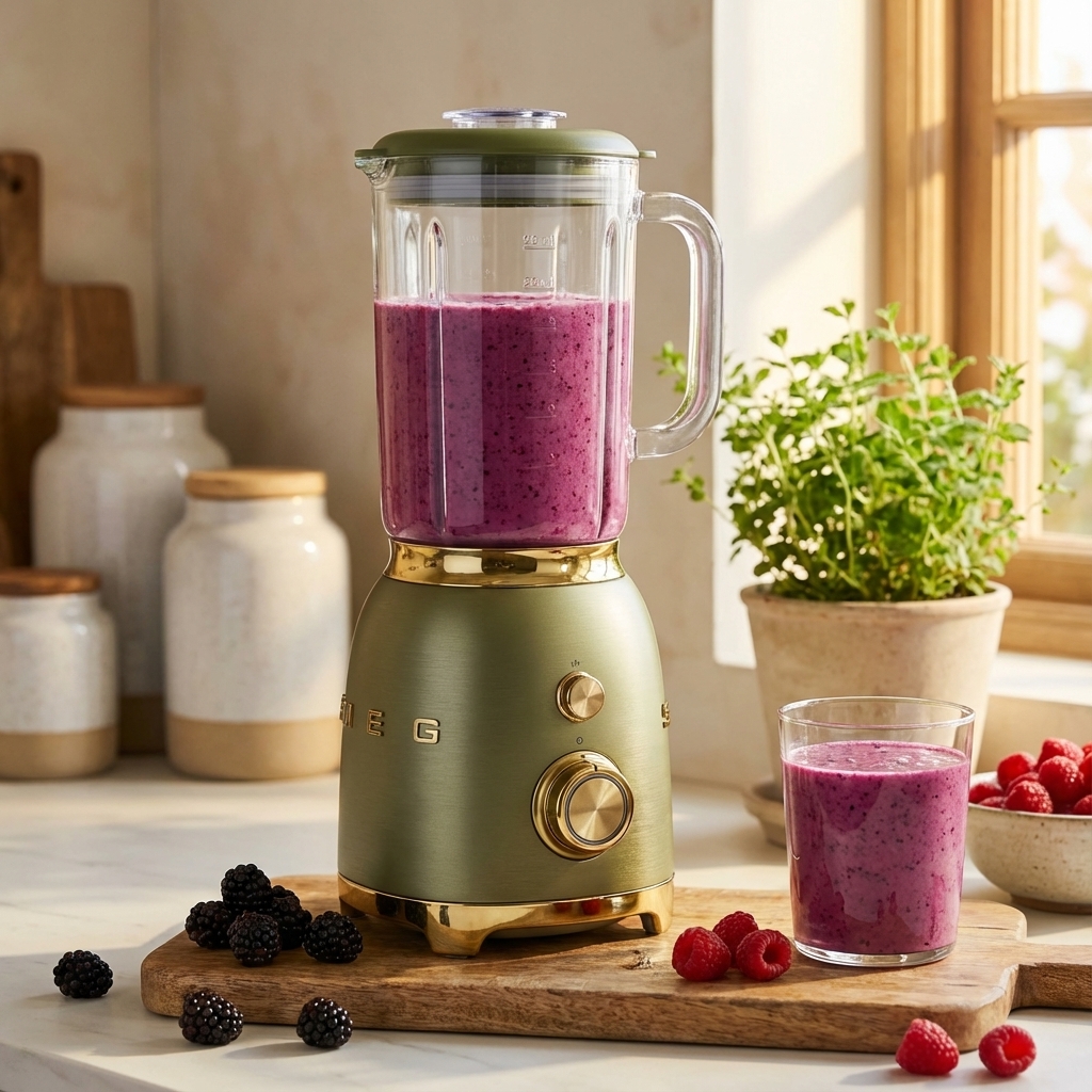 Smeg is a brand synonymous with vintage-inspired aesthetics, and its 50's Retro Style Blender is a prime example of this design philosophy. The BLF03 model is a "style icon," featuring the brand's signature die-cast aluminum body, vibrant color options, and nostalgic curvy lines that evoke the 1950s. This blender is designed for consumers who value both form and function, acting as a show-stopping piece of decor that adds a pop of personality to the kitchen. Beyond its celebrated appearance, it offers modern functionality with a 600-watt motor, multiple speed settings, and pre-set programs for smoothies and ice crushing. By masterfully combining a beloved retro look with contemporary performance, the Smeg blender champions the trend of appliances that serve as a direct expression of a homeowner's personal style.