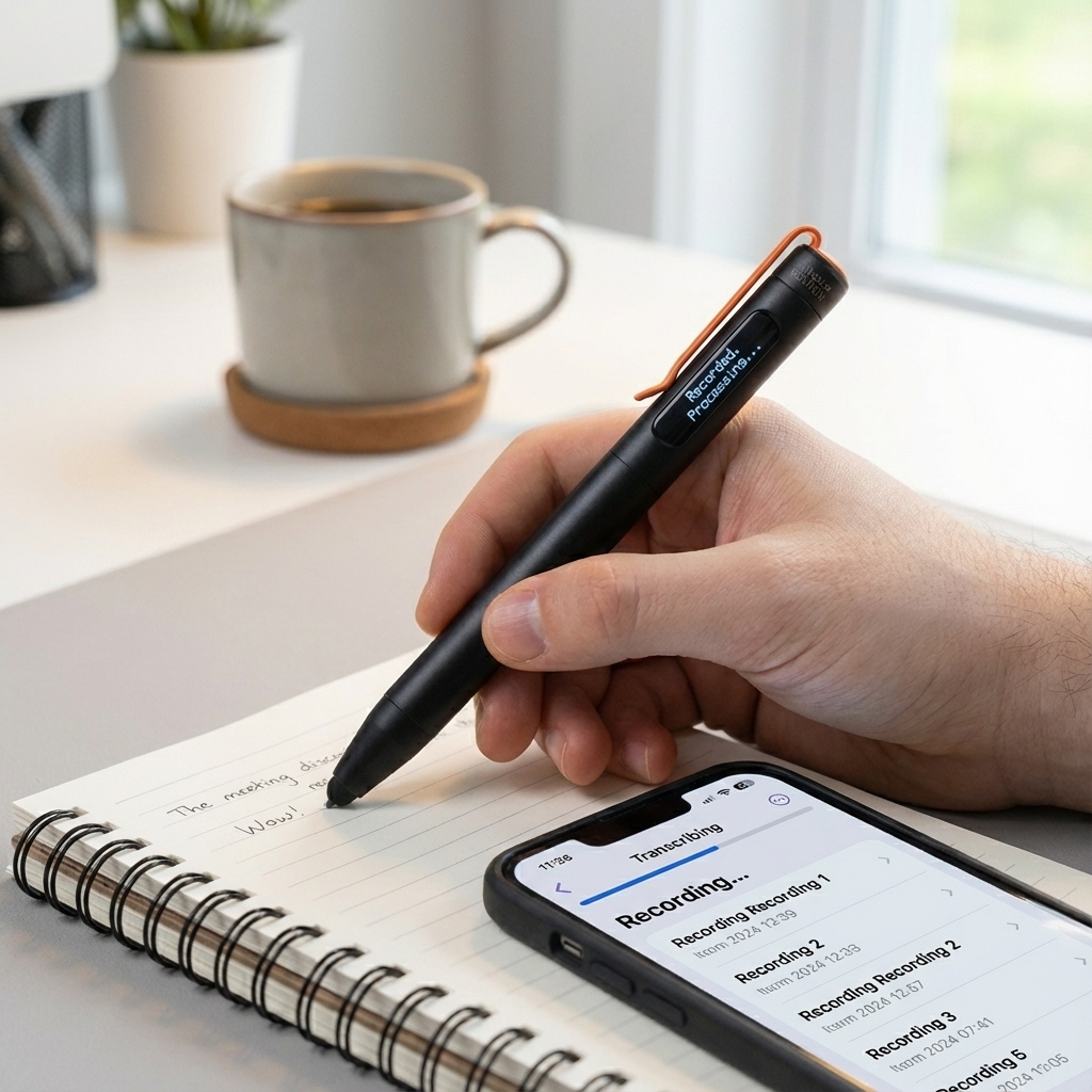 The Flowtica Scribe is a next-generation smart pen that actively participates in the creative and note-taking process. It functions as a discrete audio recorder with two microphones and features a unique "Flowmark" button to highlight crucial moments in a recording. The pen's standout feature is its powerful AI integration; it not only transcribes audio but also generates structured notes, summaries, action items, and can even identify different speakers. This is achieved by processing the recordings through leading AI models like GPT-4 and Claude 3.7 Sonnet. The companion app allows for the capture of visual notes, like whiteboards, and synthesizes them with verbal context into organized digital knowledge. With a sleek metal design and over 100 hours of recording battery life, the Scribe is designed for anyone who values the tactile feel of writing but requires a robust digital organization system.