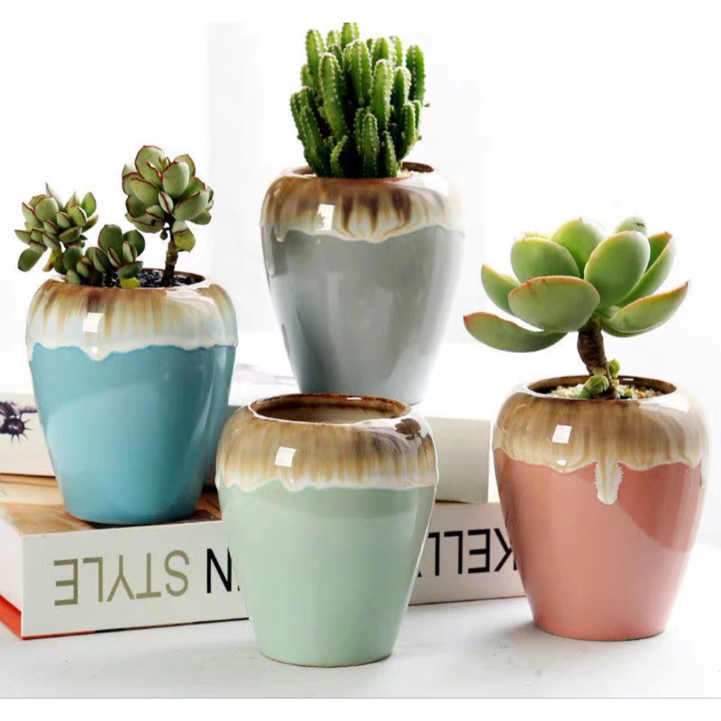 Ceramic Flower Pot Vase Flow Glaze Ceramic Flower Pot for Office Home Décor