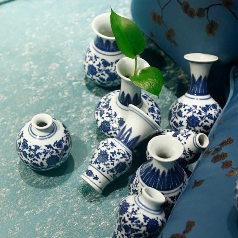 Jingdezhen Ceramic Blue White Porcelain Handmade Styles Various Simple Fashionable Small Vases Home Living Room Tea Decoration Bogu