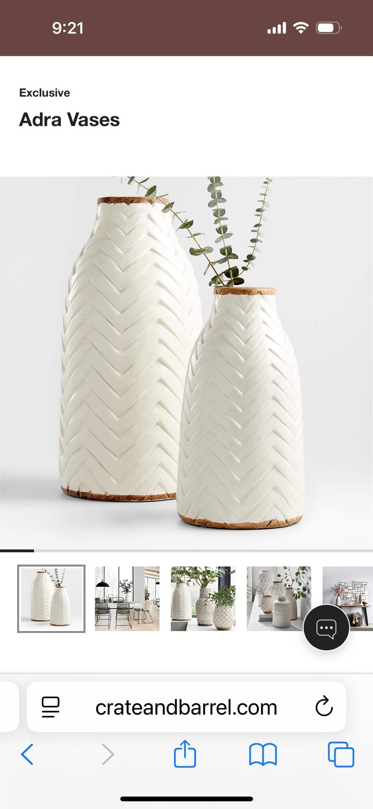 The Adra Vase from Crate & Barrel highlights a successful fusion of international design and local craftsmanship. This terracotta vase is explicitly labeled as "Made in The Philippines" and is distinguished by its hand-carved, deeply etched chevron pattern. The graceful, bottle-shaped form is brought to life by the hands of Filipino artisans, giving each piece a unique, tangible quality. Its design, featuring a crisp white glaze that contrasts with darker, rustic rims, pairs a bold, modern pattern with an artisanal feel. The Adra Vase pushes the artisan-crafted trend by making locally handmade decor accessible to a broader market through a major retail brand, showcasing Filipino artisanship on a prominent platform.