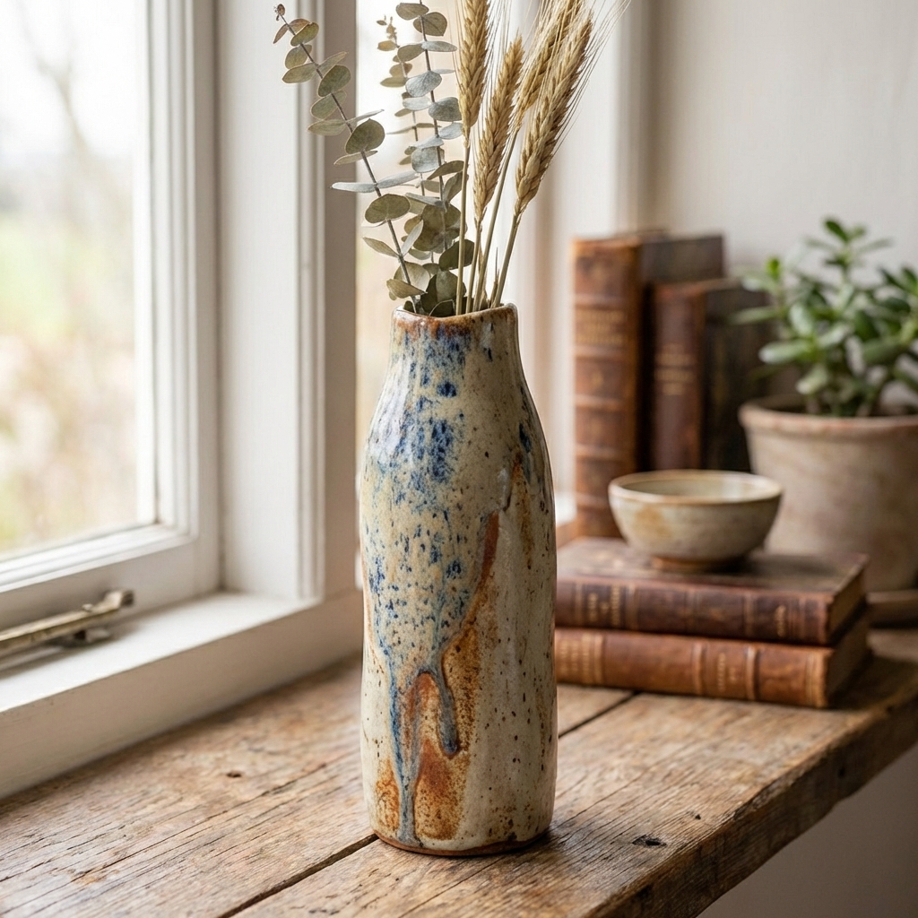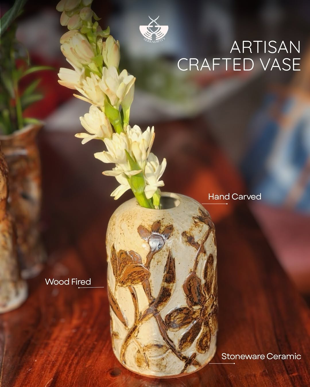 This theme celebrates the unique character of a handmade ceramic vase, where each piece is distinct. It showcases imperfections, organic shapes, and visible traces of the crafting process.
