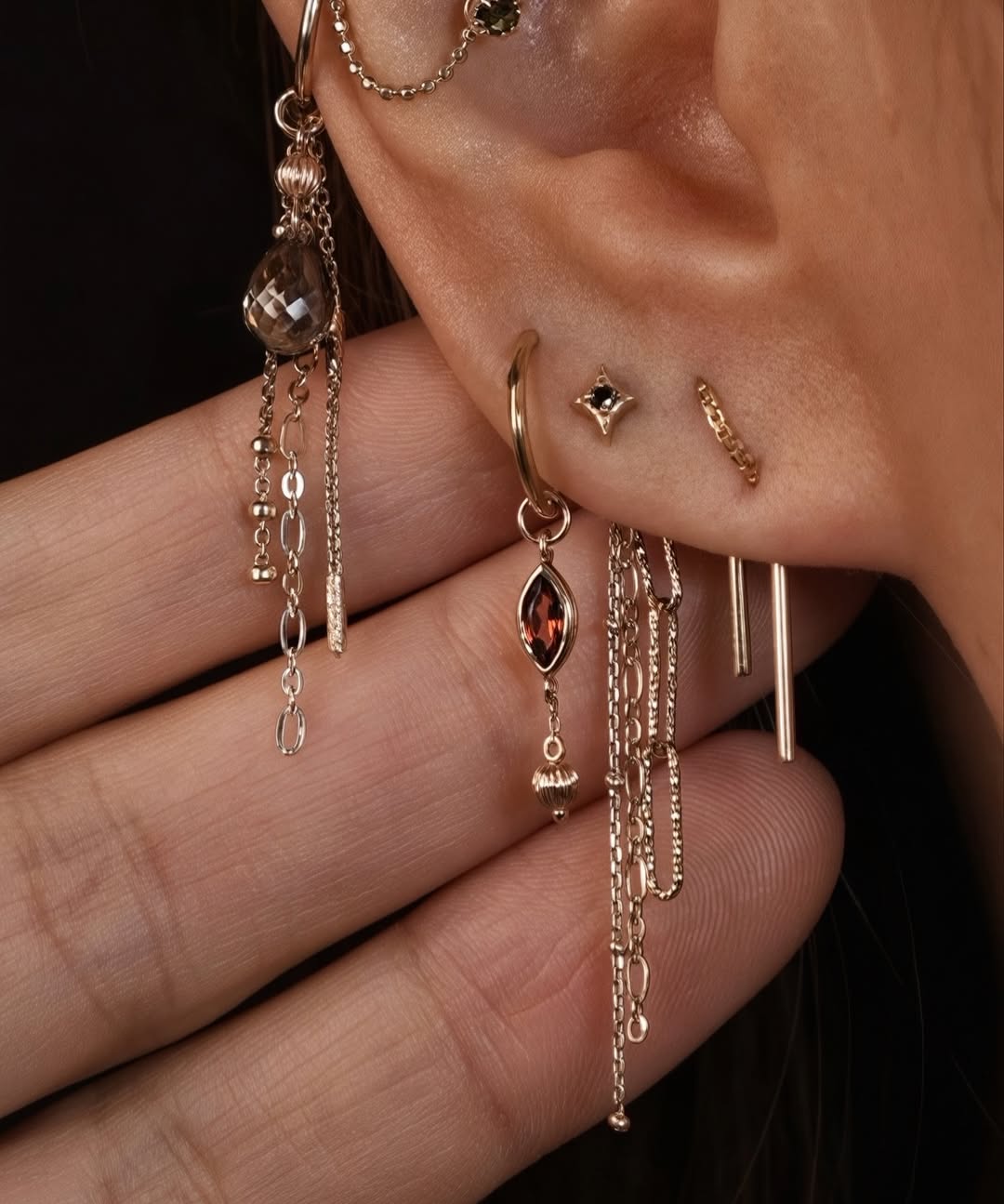 The 'Aretes Trópico' are handcrafted earrings by Mexican artisans, with a design inspired by tropical leaves. Plated in 14k and 18k gold, the earrings have a warm, natural luster. Tumbiko's commitment to handmade production ensures that each pair has a unique character, valuing the artisan's touch over mass production.