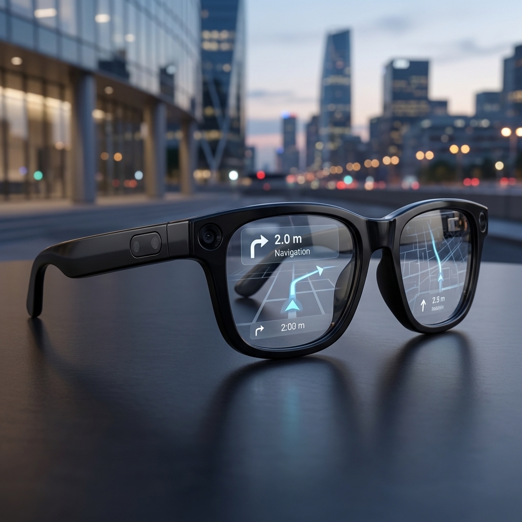 AR smart glasses overlay digital information onto the user's real-world view through a display integrated into the lenses. This can include navigation directions, notifications, and contextual information about points of interest.