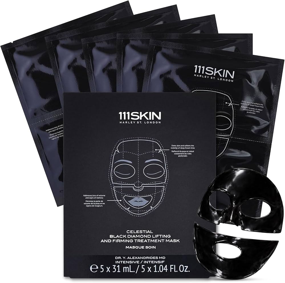 From the luxury skincare brand 111SKIN, the Celestial Black Diamond Lifting and Firming Mask is a high-performance treatment that showcases the power of peptides. This hydrogel mask is infused with potent actives, including goji glycopeptides and a biomimetic peptide called Progeline, which are designed to target signs of aging with precision. Peptides are short chains of amino acids that act as signaling molecules in the skin, and in this mask, they work to encourage collagen production, improve skin's volume, and provide a visible lifting and firming effect. The mask's multi-section design delivers these targeted ingredients to different areas of the face and neck, embodying the biotech trend's focus on potent, targeted, and scientifically advanced solutions for skin rejuvenation.