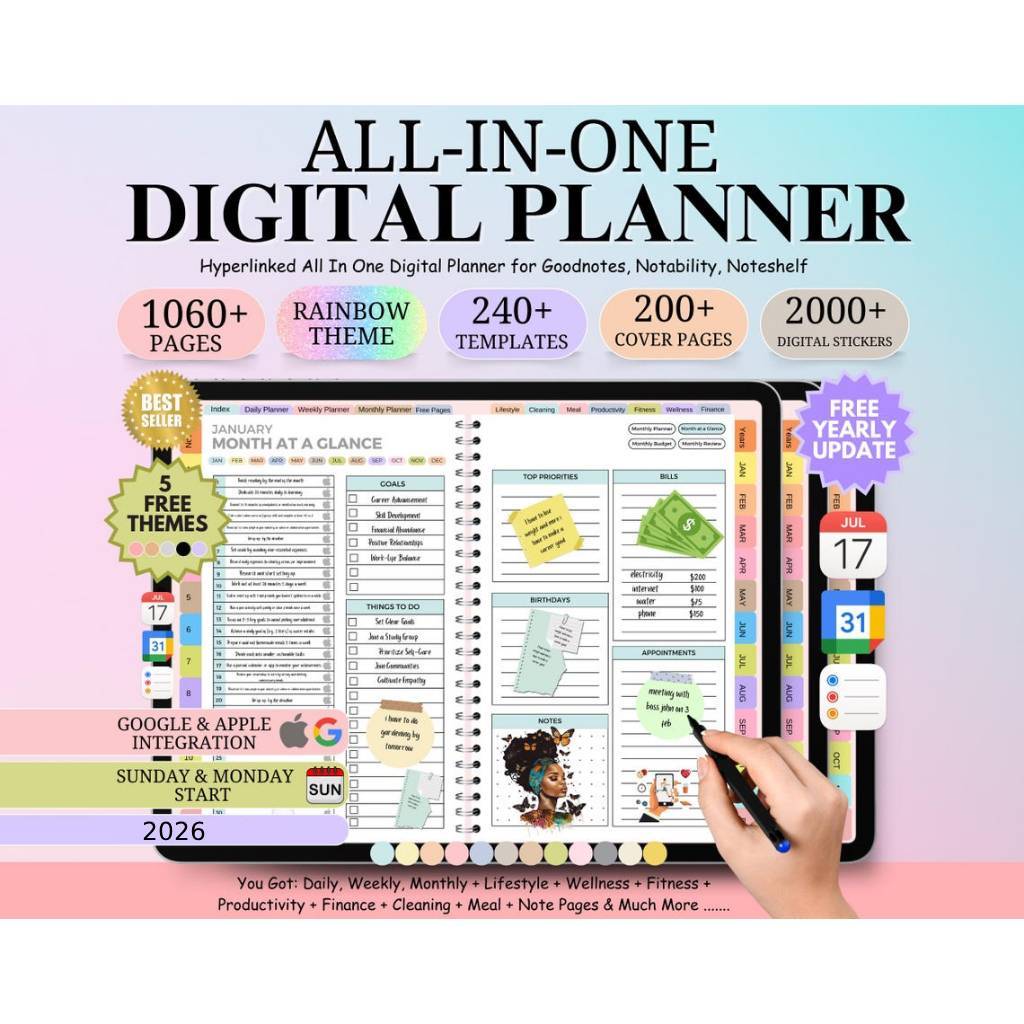 2026 Digital Planner, All-in-One Digital Planner 2026, Digital Journal, Weekly, Daily Planner, Month