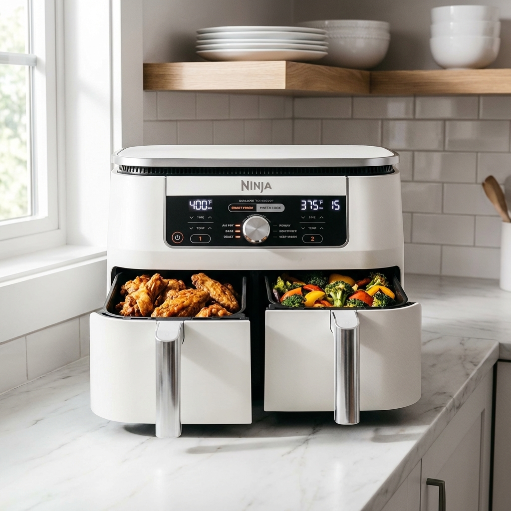 From the creators of the iconic Instant Pot, the Instant Vortex Plus Dual Basket Air Fryer is a leading competitor in the dual-zone category. It helps push the trend by focusing on user convenience and monitoring. Its most celebrated feature is the ClearCook window on the front of each 4-quart basket, paired with an internal light, allowing users to visually track cooking progress without opening the drawers and losing heat. Like other leaders in this space, it incorporates SyncCook and SyncFinish functions to either match cooking settings or ensure two different meals are ready at the same time. Its user-friendly touchscreen interface and 8-in-1 functionality (air fry, roast, broil, bake, reheat, and dehydrate) make it a top-of-mind product for consumers seeking versatility and ease of use in a dual-basket design.