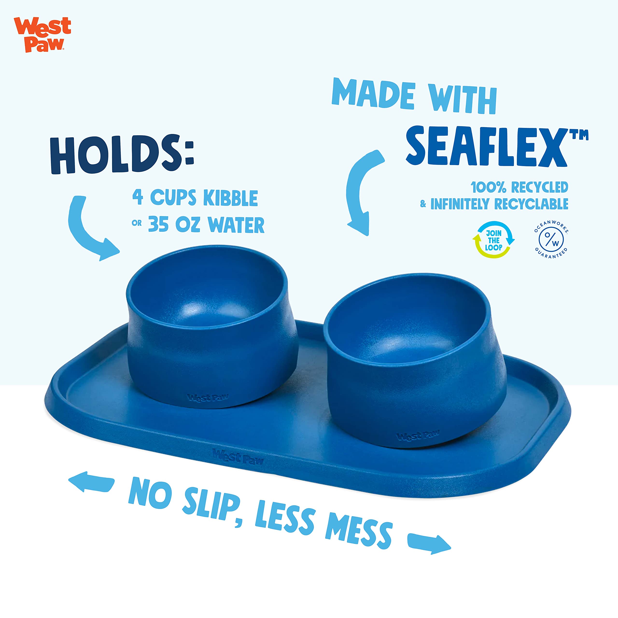 West Paw, a certified B Corp, pushes the eco-friendly trend by actively incorporating recycled materials into its products. The Seaflex No-Slip Pet Bowl is a prime example of this commitment. It is made from a blend of 12% recycled ocean-bound plastic and 88% zero-waste Zogoflex®, the company's proprietary durable material. This innovative use of ocean-bound plastic helps to address a critical environmental issue. The bowl is non-toxic, BPA-free, and FDA-compliant, ensuring it is safe for pets. Designed to be durable and dishwasher-safe, it features a no-slip base to prevent messes during mealtime. West Paw also encourages a circular economy through its "Join the Loop®" recycling program, where old toys can be sent back and repurposed into new products.