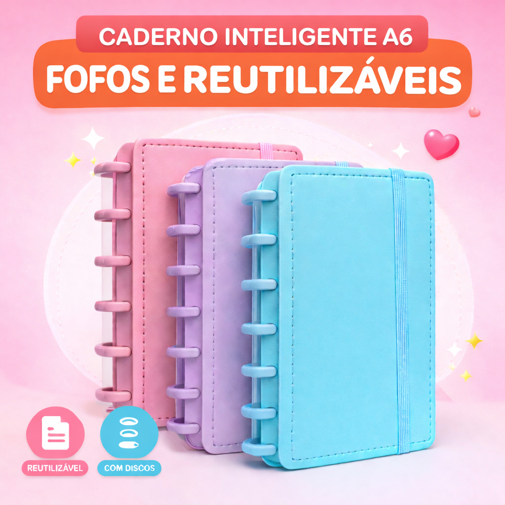 Caderno Inteligente A6 Com Disco Reutilizável Papelaria fofa - Personalizável