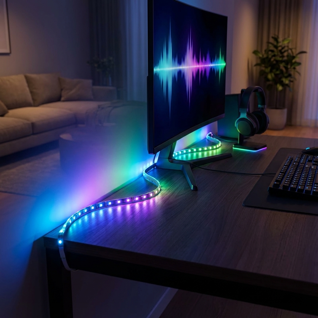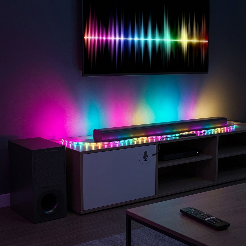 This system uses a small camera, mountable above or below the TV, to read on-screen colors and project them via an addressable gradient LED strip. Its camera-driven solution offers universal compatibility. The "Sync+" feature allows extending the screen-mirroring effects to other Nanoleaf products like Shapes and Lines for a room-filling immersive effect.