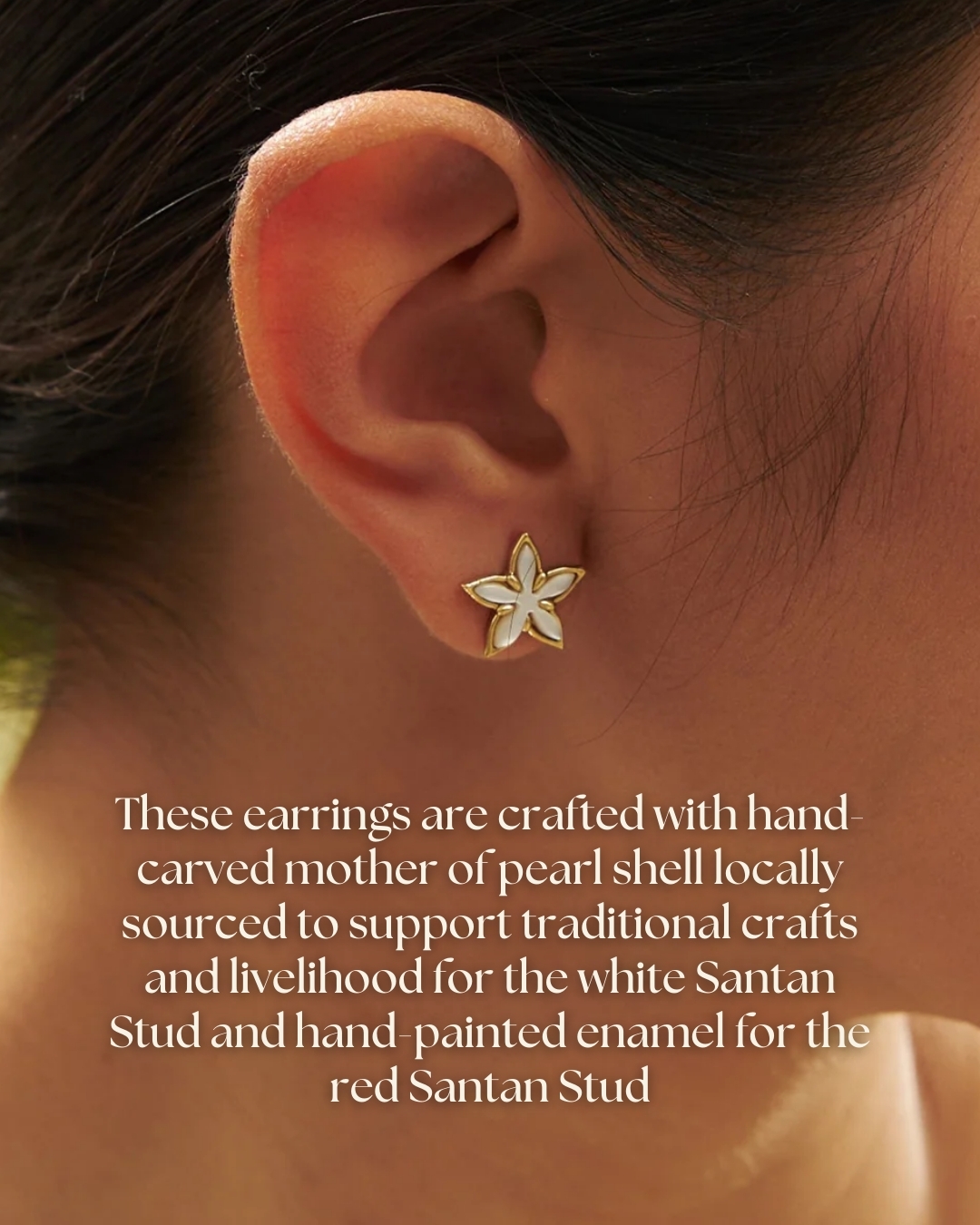 A collaboration between heritage brand Cambio & Co. and designer Arete, these earrings are a radiant tribute to Filipino pride. Inspired by the Philippine sun ('Araw'), a powerful national symbol, they are designed for the modern Filipina/o/x. Handmade by master shell artisans in Cebu, they are crafted from luminous mother-of-pearl on a lightweight wood base for comfortable wear. The product is iconic for its stylish use of the sun motif.