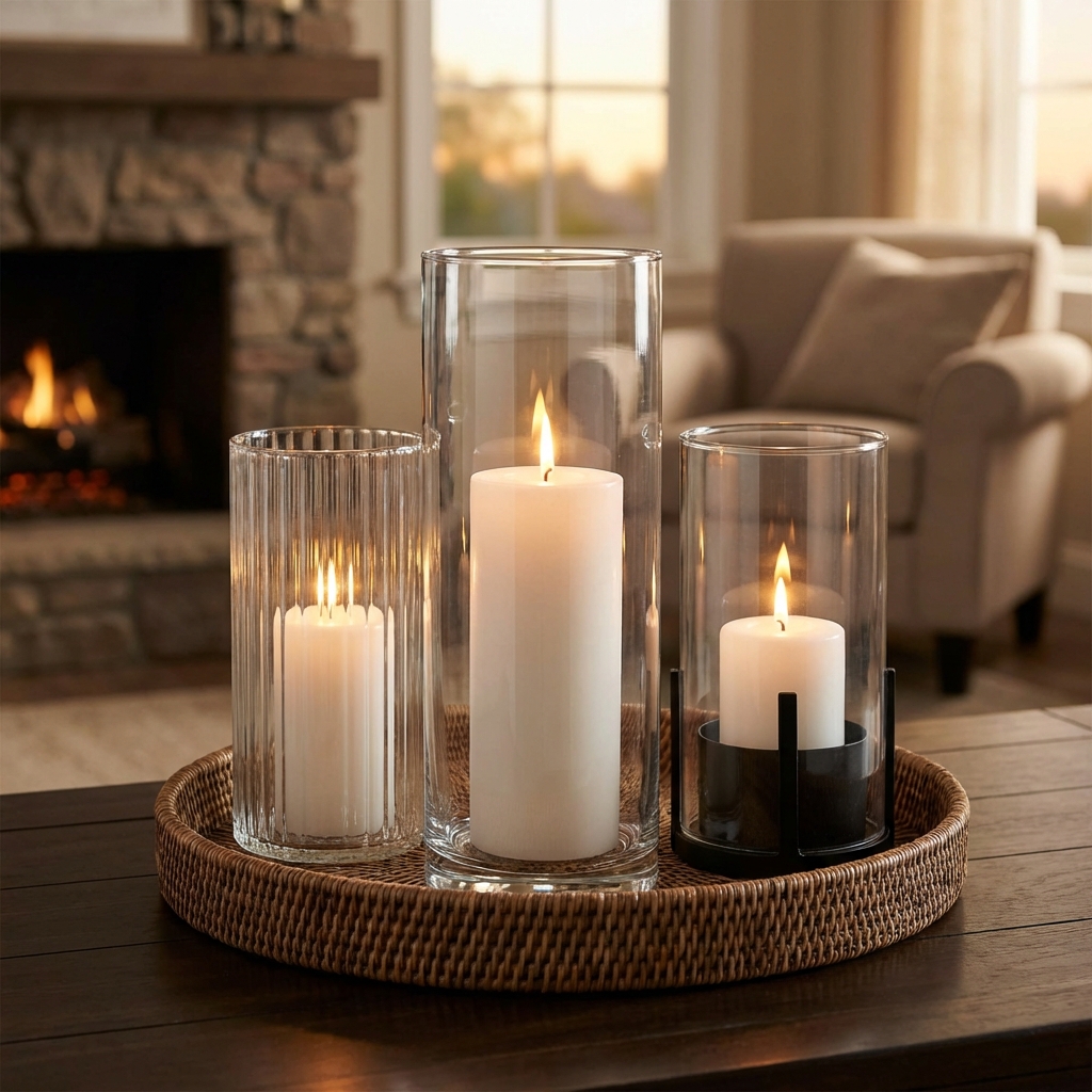 These holders often feature intricate patterns etched into the glass, sometimes combined with a mercury glass finish that provides a soft, antiqued luster. This approach pushes the glass hurricane trend into a more glamorous and decorative direction, allowing the holder to be a captivating object even when unlit. The play of light through the etched patterns and the reflective quality of the mercury finish make it an iconic piece for creating an elegant and moody atmosphere.