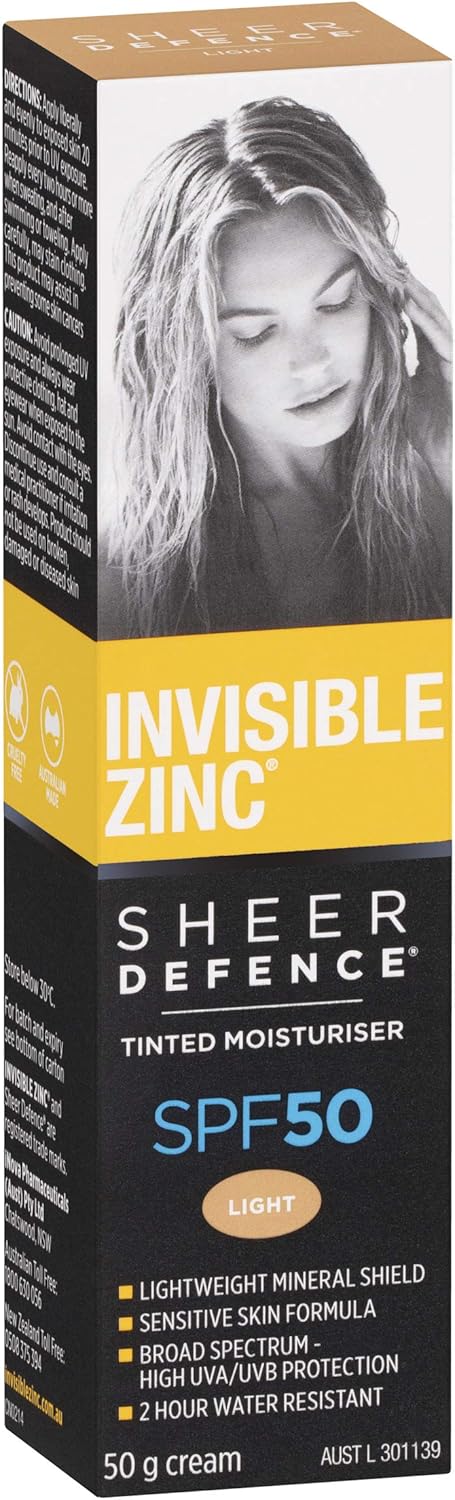 Invisible Zinc Sheer Defense Tinted Moisturizer SPF50, Light, 50g