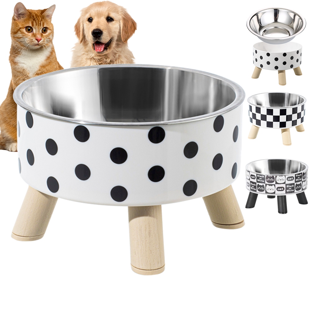 High-legged pet food bowl series double-layer pet feeder stainless steel pet feeding bowl durable anti-corrosion