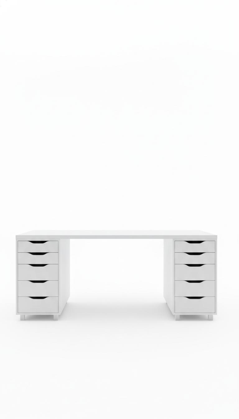 White Minimalist Desk With Drawer Units