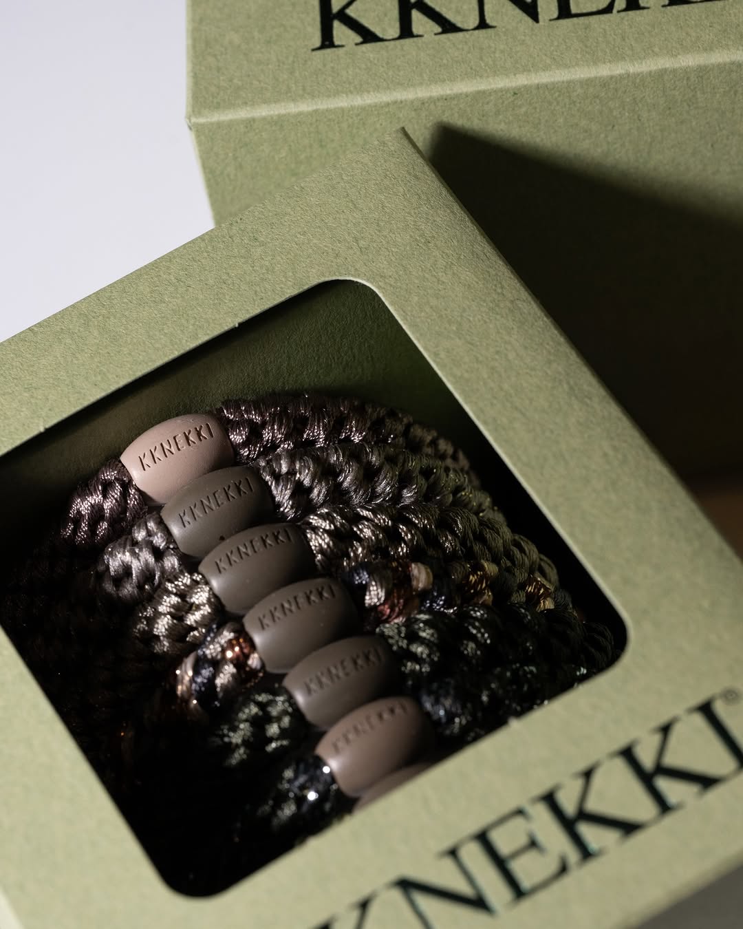 Evita Peroni is synonymous with luxury hair accessories, and their take on the minimalist trend is both elegant and refined. The brand offers a range of high-quality elastic hair ties, often featuring subtle yet distinctive embellishments. Among their collections, you can find hair ties with delicate, polished metal or beaded details that reflect a sophisticated aesthetic. These hair ties are designed to be gentle on the hair while providing a secure hold. By focusing on premium materials and craftsmanship, Evita Peroni elevates the simple hair tie into a piece of jewelry for the hair, perfectly embodying the minimalist metallic and beaded trend with a touch of timeless Danish design. While a specific "beaded" model name can vary by collection, their lines frequently include pieces with these elements.